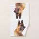 ¡Llamada de todos los amantes del pastor alemán!!! ¡He encontrado el acento casero perfecto para usted! Un pastor alemán magnífico sienta parecer dignificado como de costumbre. ¡La los ojos llenan de intensidad típica del pastor alemán! ¡La imagen fue tomada de mi foto y hecha en esta acuarela hermosa! ¡Estas toallas serán la adición perfecta a su adornamiento de amor del pastor alemán! Una gran manera de mostrar su amor de la raza mientras que añade un estilo de la porción entera a su cuarto de baño. ¡Éstos harían un regalo excelente, especialmente para los amantes del pastor alemán en su lista de regalo! ¡Verdaderamente único y especial!