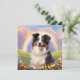Una tarjeta de simpatía conmemorativa del Pastor Australiano personalizada con una bella pintura de un Pastor Australiano en una colina paradisíaca con un hermoso arcoiris sobre la cabeza. Simbolizar al perro pastor australiano ha pasado el puente arcoiris al cielo doggy. Puedes personalizarlo con el nombre de tu propio perro pastor australiano o cualquier otro texto en el reverso de la tarjeta. Hace un homenaje especial o un regalo de solidaridad para cualquier amante del perro pastor australiano si su querido perro ha pasado.