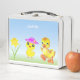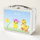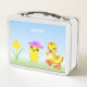 Paté y pato en la Metalizado y azul claro de la caja del almuerzo.