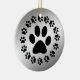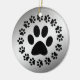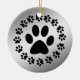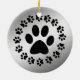 Impresiones negras bilaterales de la pata en el ornamento de plata.