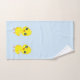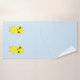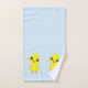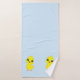 Un personalizado de pollo con toalla azul claro.