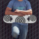 Skateboard mostrado en una huella gráfica abstracta en blanco y negro. Colors Black and White Buy tal como está o personalizar este artículo a tu gusto. Imagen de stock
