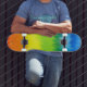 Este skateboard de calidad se muestra con un patrón de arte abstracto impreso en colores del arcoiris. Compra tal cual o personalizar este artículo a tu gusto. Imagen de stock 123freevectors.com