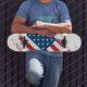 Skateboard mostrado en un gráfico gráfico de grunge USA Flag. Compra tal cual o personalizar este artículo a tu gusto.