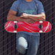 Este skateboard de calidad se muestra con un patrón de arte abstracto impreso en colores de rojo y rosa multi. Compra tal cual o personalizar este artículo a tu gusto. Imagen de stock 123freevectors.com
