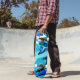 El skateboard se muestra en una imagen abstracta de varios colores azul. Compra tal cual o personalizar este artículo a tu gusto. Imprimir material freepik.com
