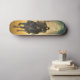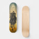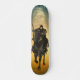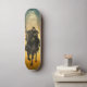 La patineta presenta un diseño visual de un caballero negro montado en su caballo en plena carrera. La escena evoca la sensación de movimiento y acción, ya que el caballero y su caballo están en plena velocidad. Este diseño temático le confiere a la patineta un carácter único y visualmente llamativo, fusionando elementos de la cultura medieval con la modernidad de la patineta.