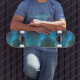 Inspirado por el cielo de la noche, este Celestial Skateboard es colorido con tonos azules.