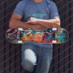 Dé rienda suelta a su artista callejero interno con este diseño de skateboard inspirado en el graffiti. Con letras de graffiti audaces, efectos de pintura en aerosol y una ráfaga de colores vivos, este patinador es perfecto para hacer una declaración en el parque de patinaje o en las calles. Muestra tu estilo único y tu pasión por el patinaje con este sorprendente skateboard de arte urbano.