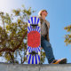 Patineta Guay con fondo de bola roja y rayas de abeja.