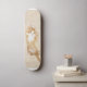 Naranja y tabby blanco gata muy joven campanan en una patineta como jugar con los usuarios tirantes