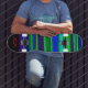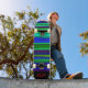 Patineta de rayas negras, verdes y azules