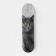 La patineta presenta un diseño específico, el cual representa a un gato negro británico de pelo corto. Imagina una tabla de patineta que tiene ilustrado en su superficie la figura de un gato de la raza británica de pelo corto, caracterizada por su cuerpo robusto y su pelaje corto y denso. Este diseño incluye detalles que resalten las características distintivas de la raza, como sus grandes ojos redondos y su expresión facial típica. En resumen, se trata de una patineta personalizada con un toque único y creativo al incorporar la imagen de un gato británico de pelo corto en su diseño.