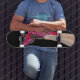 Patineta negra de zapatillas rosadas
