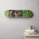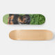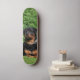 La patineta tiene un diseño específico representando a un perro Rottweiler. En este diseño, el Rottweiler está representado como si estuviera vigilando en un jardín. La imagen que se evoca es la de un perro de esta raza, conocida por su apariencia robusta y su actitud vigilante, colocada en un entorno de jardín. Este diseño incluye detalles que reflejen la apariencia distintiva de un Rottweiler, como su pelaje negro y marrón, así como su postura alerta y protectora mientras observa su entorno en el jardín. La combinación de la patineta con este diseño temático de un perro Rottweiler le da un toque único y personalizado al objeto.