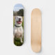 La patineta presenta un diseño específico, el cual representa la imagen de un pitbull blanco. En este diseño, el pitbull está representado en una posición sentada, y en el fondo un entorno de campo. La patineta, por lo tanto, incorpora un elemento visual distintivo al mostrar la imagen de un pitbull blanco en una pose relajada en un entorno natural. Este diseño brinda un toque único y personalizado a la patineta, fusionando el mundo del skateboard con la estética y la temática relacionada con el pitbull y la vida en el campo.