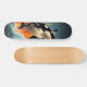 La patineta tiene un diseño visual de una impresionante orca saltando fuera del agua. La imagen que evoca es la de un pez orca, también conocido como ballena asesina, mostrando su poder y gracia mientras realiza un salto espectacular. La representación en la patineta destaca la majestuosidad y la fuerza del animal marino, capturando su movimiento dinámico y la sensación de libertad asociada con su salto. Este diseño proporciona una estética única y llamativa a la patineta, fusionando la belleza de la naturaleza con el estilo urbano del deporte.