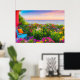 Desde nuestra colección de pintura al óleo de "Seaside Sunrise Italiana", se simula el arte de la IA. Una vibrante y colorida escena ajardinada que capta la belleza de un amanecer cerca del océano.