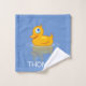 ¡Usted no puede tomar simplemente un baño sin los patos de goma, especialmente tan lindos como éste! Un modelo de goma tejado del pato en fondo azul claro, y un pato de goma más grande en el top en un círculo azul. Usted puede añadir o quitar su nombre, cualquiera usted tiene gusto. Regalo perfecto para cualquier familia. También disponible en otros colores en mi tienda de Zazzle.