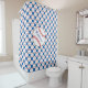 Esta cortina de ducha tiene unas bambalinas rojas y blancas rodeadas de un fondo azul. Personalizar fácilmente el texto para un hincha especial de deportes o elimina por completo. Se puede cambiar el fondo azul adaptándolo a la decoración.
