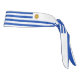 Bandera de Uruguay Elegante Bandera Patriótica Banda de cabeza con los adorables colores de la bandera de Uruguay impresos por todas partes. El emblema de la bandera está convenientemente colocado sobre el diseño, lo que permite que se muestre de forma prominente una vez doblado el cinturón de seguridad. Emblem position es personalizable usando la característica "Personalizar it!". El encanto y la belleza de la banda de la cabeza, con las bellas combinaciones de colores y elementos de la bandera, son el regalo perfecto y la declaración de la moda. © 2022 CountriesOfTheWorld