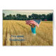 Joven chica corriendo en un campo de trigo con bandera estadounidense. La tarjeta se puede usar para el cumpleaños, el Día de los Veteranos o cualquier evento patriótico.