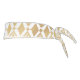 Patrón geométrico moderno y elegante de las tribus doradas, con triángulos, rayas, cuadrados, flechas, formas de diamante, chevron, puntos y formas de hojas, elegantes tonalidades doradas falsas amarillas y marrones, sin costuras, sobre un sencillo fondo de color blanco. Esta obra de arte tribal, azteca, mística, lux, de moda, decorativa, de dibujos a mano, nativa, de motivos étnicos es perfecta para el uso diario o la decoración de casa.