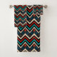 Se trata de un patrón decorativo hecho a mano y estilizado con adorno azteca en tonos negros, rojos, turquesa y beige.