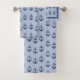 Juego de toallas de baño con patrón azul de anclaje náutico. Náutica azul oscuro en el diseño de fondo azul claro.