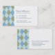 Instructor de golf profesional o tarjetas de negocios de entrenador. Perfecto para instructores de golf profesionales que puedan dar a nuevos clientes potenciales. Indique el nivel de instrucción que se ofrece y personalice con sus propios detalles. Espacio inverso para incluir calificaciones, capacitación e información para ayudar a conseguir más trabajo. Si desea menos información, simplemente elimine el texto no requerido. Patrón y diseño estilo Argyle de golf de Sarah Trett.