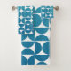 Patrón con formas geométricas retro-azules dispuestas en una rejilla, mostrando círculos y semicírculos que varían en la sombra de la luz a la oscuridad. El diseño crea un efecto de ilusión óptica con su arreglo repetitivo y de mediados de siglo.