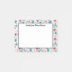 Post-its para la enfermera con un marco de estetoscopios, corazones con una curva de ecg, tiritas, medicinas y termómetros en rojo y azul, y texto de personalizable donde se puede añadir tu nombre.