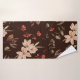 Patrón bohemio sin costuras florales con fondo marrón oscuro, flores de color blanco y rojo