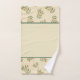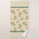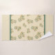 Patrón botánico de ramas doradas y verdes con hojas sobre fondo beige con rayas.