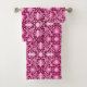 Toalla ambientada en un patrón textil Art Nouveau, basada en un diseño vintage de cerámica de la cerámica William Morris, digitalizada y coloreada para un suave efecto acuarela - rosa suave rosa y blanco sobre un fondo burdeos/marrón