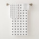 Añada un acento clásico a su cuarto de baño con un elegante juego de toallas personalizados que incluye un paño de lavado, toalla de mano y toalla de baño con puntos de polka negros sobre un fondo blanco. Compra el conjunto completo o cualquier parte de él. Para ver el patrón geométrico de diseño en otros elementos, haga clic en el enlace "Artes Rocklawn". Imagen creada digitalmente. Copyright ©Claire E. Skinner. Todos Los Derechos Reservados.