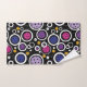 Toalla de mano con albóndigas coloridas y círculos blancos sobre fondo negro. Perfecto como regalo para un jugador de pickleball de moda. ¡Feliz uso y mejores deseos para tus futuros juegos!