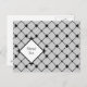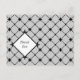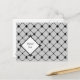 Gracias postales con un elegante patrón de fondo cruzado en negro sobre un fondo gris. Haga clic en Personalizar para cambiar los colores de fondo, las fuentes, agregar texto y más, e incluso guardar el diseño para más adelante.