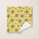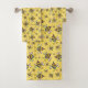 Patrón repetido de muchas abejas con burbujas en un fondo amarillo.