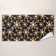 Patrón de color de las flores rosadas de margarita en conjunto de toallas de baño negro. Un bonito patrón floral con flores simples en un estilo acuático. Las flores son rosas y amarillas sobre un fondo negro.