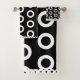 Un conjunto de toallas de baño geométricas y audaces que presentan un patrón moderno de anillo circular en negro y blanco, realzado por un detalle de borde distintivo. Diseñado para interiores contemporáneos, este conjunto de toallas de baño con patrón de anillo circular en negro y blanco moderno aporta una presencia gráfica refinada a su espacio, equilibrando el minimalismo y el impacto visual. Personalízalo con tu monograma para añadir un toque exclusivo y personalizado. Una elección elegante para un hogar sofisticado o un regalo considerado para los amantes del diseño moderno.