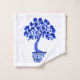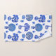 Toalla colocada en un patrón de caprichosos árboles bonsai en plantas de porcelana chinas, en los tradicionales tonos de azul cobalto profundo a claro, sobre un fondo blanco
