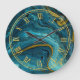 Este reloj de pared de diseño único es perfecto para añadir un toque contemporáneo a su decoración. Adornado con números romanos dorados, con un fondo distintivo de arte azul y oro fluido, asegura que esta pieza se destaque en todo momento.