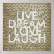 poster cuadrado con estampado de arte gráfico angustiado y cita de texto de ensueño vivo amor risa. derechos de autor de obras de arte Ann Powell.