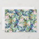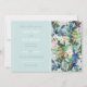 Flores románticas florecientes y pájaros primavera pintura botánica, con colibríes coloridos, pájaros azules, pájaros amarillos, flores de magnolia blancas y rosas, flores amarillas pequeñas y flores blancas, varias formas de hoja verde follaje, patrón de tema botánico con un fondo azul cian pálido. Un arte botánico único.