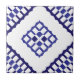 Elegante azulejo de azulejos decorativos con formas geométricas en azul y blanco.