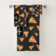 Personaliza tu primera habitación con tu nombre, toalla de baño de decoración hogareña para cualquiera. Guay y divertida pizzería en gris oscuro - regalo único para comida, restaurantes, pizzerías... Jugoso vector pizza hecha con costra crujiente, queso, salami, champiñones, aceitunas y una rociada de orégano.