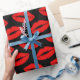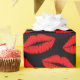 Sólo muchos besos de lápiz labial rojo brillante en papel de envoltura negro. Adecuado para todos los regalos envueltos de amor.