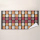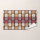 Toalla de baño de patrón de bloque de color geométrico diseñada por Nisha Prabhu. El amarillo mostaza, el rojo magenta, el gris y el blanco se bloquean sobre el fondo de color negro. Perfecto regalo para maquillador, salón de belleza, cosmetóloga, entusiasta del maquillaje.