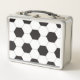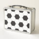 Una lonchera con un diseño de patrón de baloncesto de fútbol blanco y negro. ¡Clásico y genial de vuelta a la escuela! ¡Genial para los estudiantes que son futbolistas o hinchas!